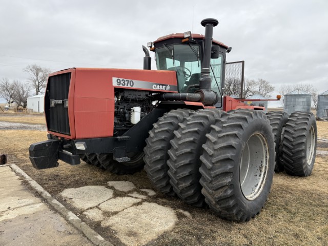 - Case IH 9370 Steiger 4WD Tractor w/Manual Trans, 4 Hydr, 20.8-42 (Triple) Tires / Band Duals, 36) Weight Rear Weight Package, CN14 Motor, Used fall of ’25, 5079 hours, SN JEE0067560 (’97), Kept Outside – Paint fading. Note: Has homemade rear cab protector screen.